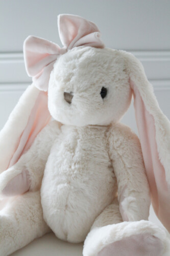 ホワイトのボディに、ピンクの内耳と手足がアクセントになった可憐な存在です。