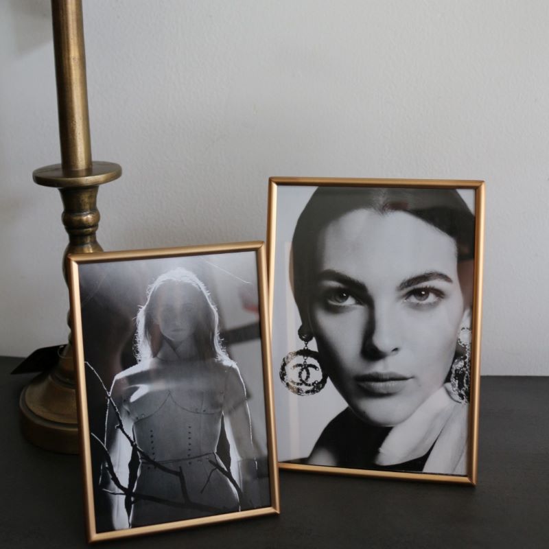 シンプルで華奢なマットゴールドフレームのフォトフレームは上品なニュアンス。