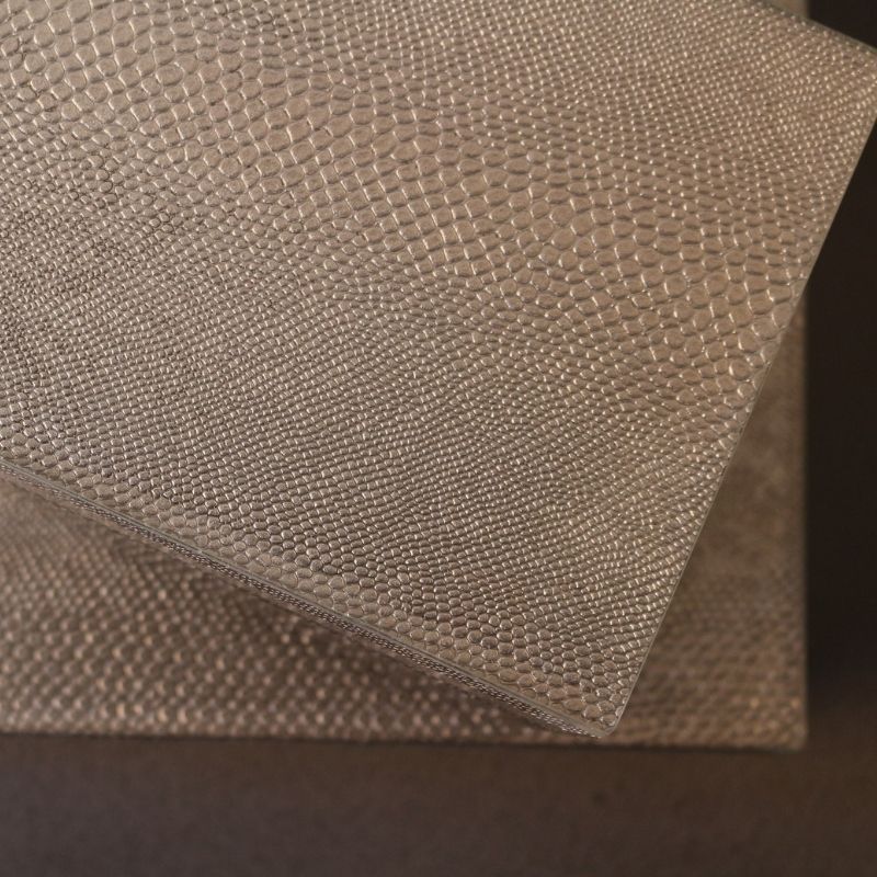 日常を彩る大切なアクセサリーを、まるでアートピースのように美しく収めるジュエリーボックス。 表面には繊細なリザード模様を施し、都会的で洗練された印象に仕上げました。