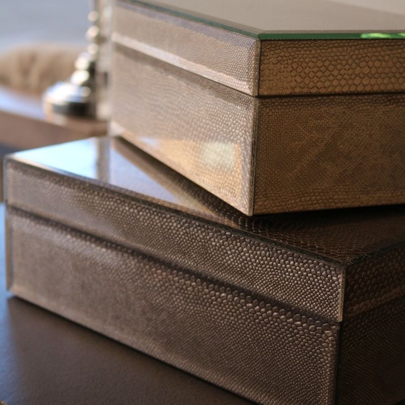 ラグジュアリーな輝きを放つ、リザード調ガラスジュエリーボックス