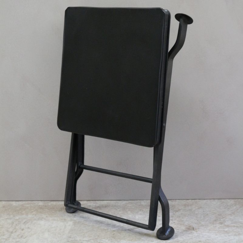 空間を邪魔しない、シンプルでミニマルなデザインのフォールディングテーブル。 マットなブラックアイアンの質感は、アンティーク調の家具や現代的なコンクリート打ち放しの壁など、どんなインテリアにも馴染みます。