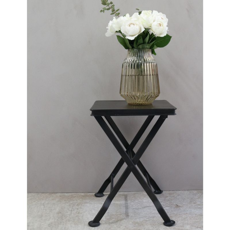 【商品詳細】カラー:ブラックサイズ:W:27.5㎝ D:27.5㎝ H:38㎝素材 :アイアン原産国:インド「使う時だけ」をスマートに。凛とした佇まいのアイアン折りたたみ台