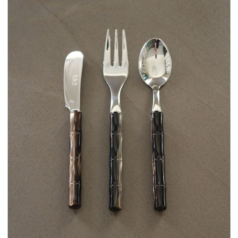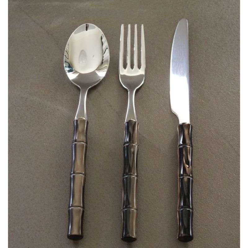 普段使いにも、来客時にも両方で使えるスタイリッシュなカトラリー。持ち手部分のデザインはバンブーモチーフ、モダンなブラウンパールカラーです。テーブルコーディナイトでは和・洋にも合わせやすい落ち着いた雰囲気。