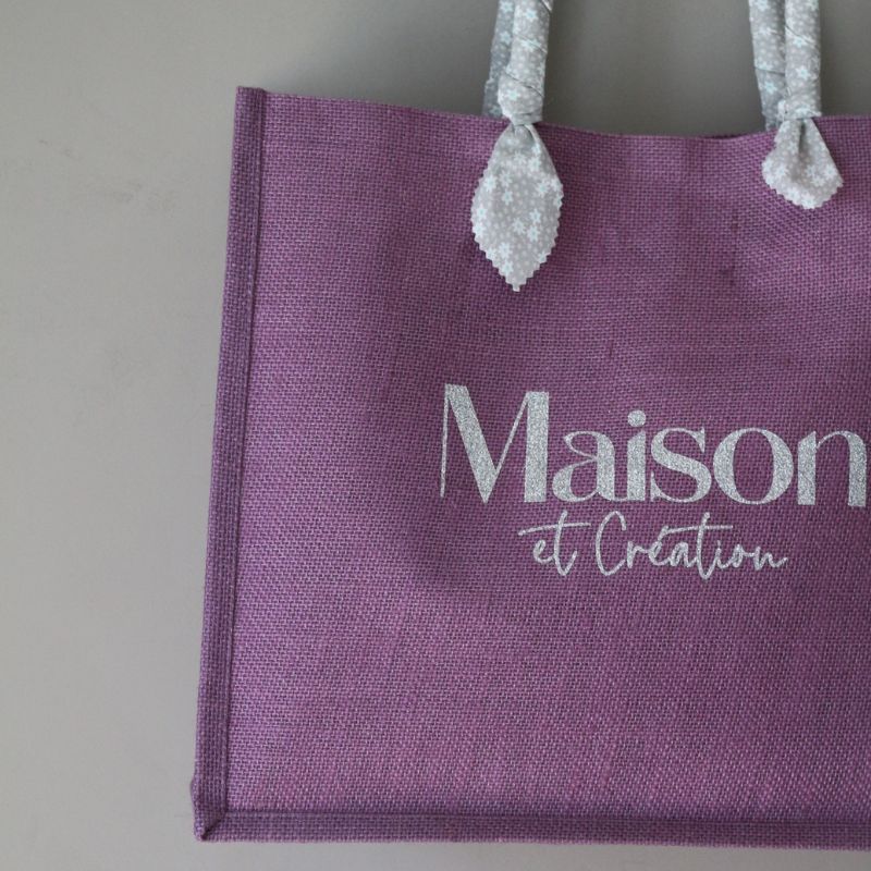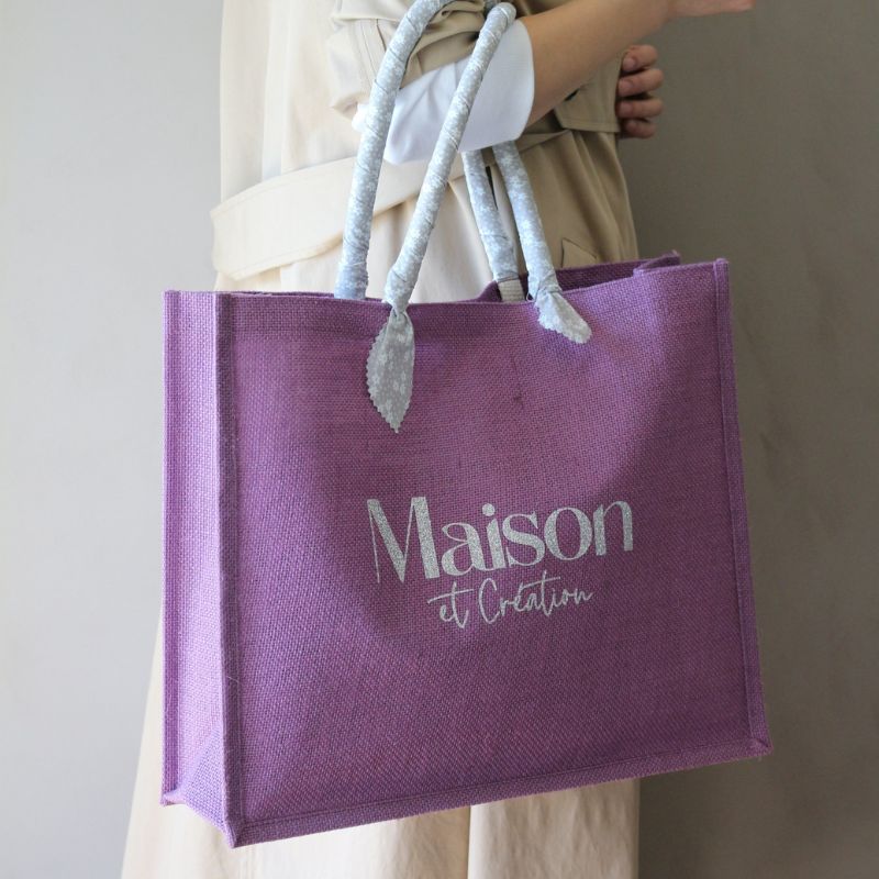 ジュート麻の素材のメゾンエクレアシオンオリジナルバックです。肩からもかけれて、持ち手も布巻で柔らかです。持ち手とバッグの色はフランス人ならではのキュートな組み合わせです。グリッターなロゴデザインがアクセントです。内側はビニールコーティングされていますので、汚れたらふき取りもできます。