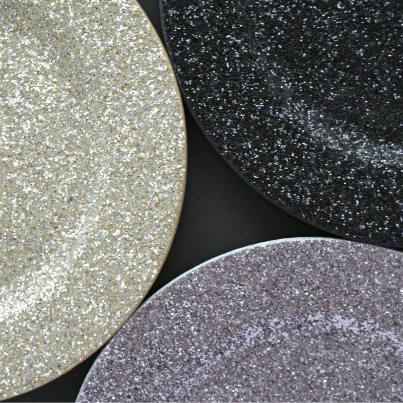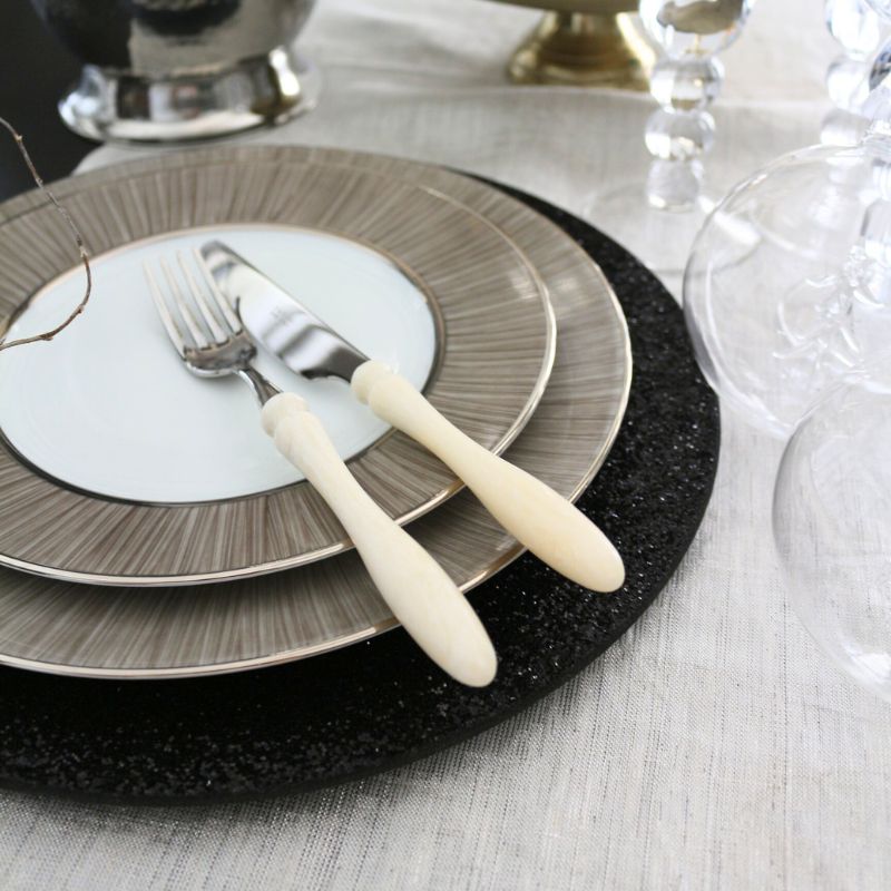 特別な日の食卓を、華やかに演出するグリッター加工のチャージャープレート(アンダーディッシュ)。いつもの食器の下に敷くだけで、テーブルが一瞬にしてパーティー仕様にグレードアップします。