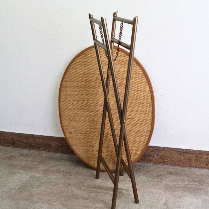 洗練された佇まい。ラタン天板のオーバル・フォールディングテーブル。