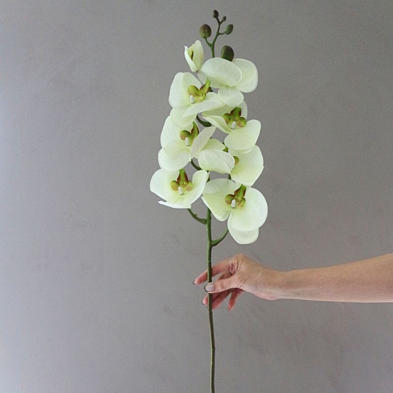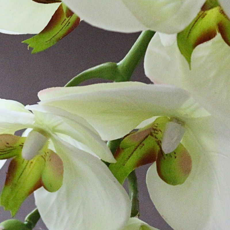 - ニュアンスのある色彩単なる「白」ではなく、光を含んだような柔らかなアイボリー。花びらの中心に差すライムグリーンとボルドーのラインが、生命の息吹と芸術的な表情を演出します。